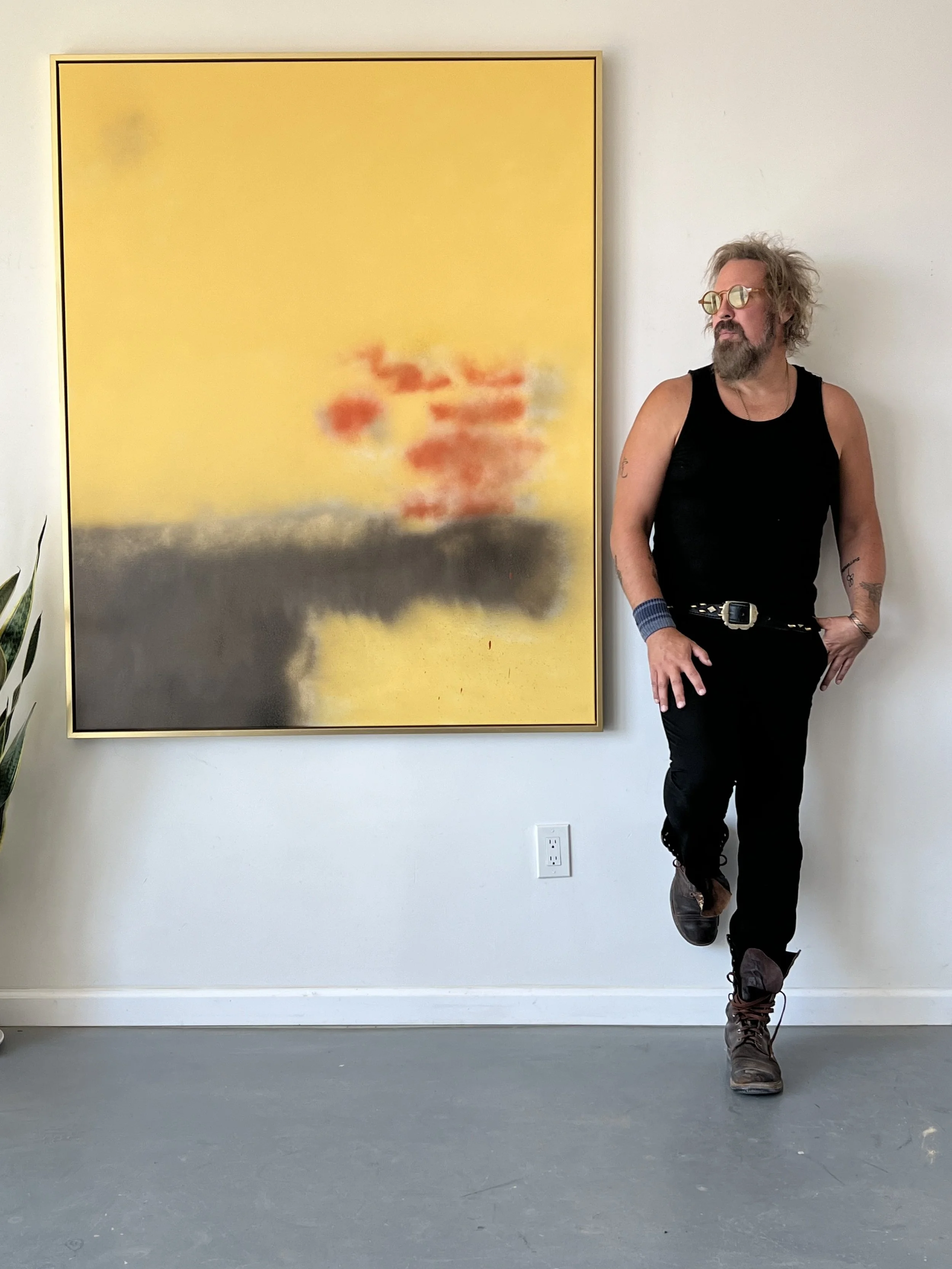 These days I'm out in the desert in Landers. After years in cities—Boston, New York, Los Angeles—I found something in the openness of the Mojave that allowed me to exhale. The space, the silence, the way light shifts across the landscape: it all feeds the work. The desert isn't just where I live—it's in the paintings themselves, mixed into the surfaces, informing the palette.